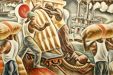 | The exhibition will include "Howard Cook Mississippi Stevadores 1935," shown above, and "Ida Abelman We Have a Claim! circa 1938," shown above left, both artworks courtesy of Syracuse University Art Collection. |