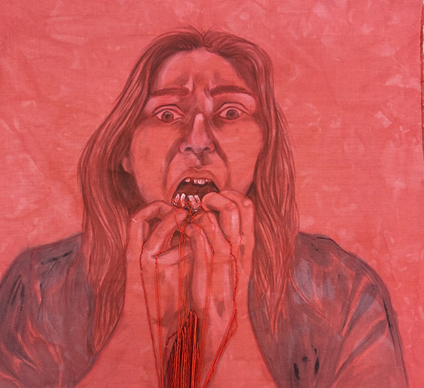 Now a B.F.A. candidate and senior studio art major with a concentration in fibers who is graduating in December, Kummrow’s senior thesis exhibition on these deeply disquieting, almost universal human experiences, titled “Parasomnia, A presentation of Fiber and Drawings,” opened on Nov. 21 and continues through Friday, Dec. 5, at the university’s Dowd Gallery.