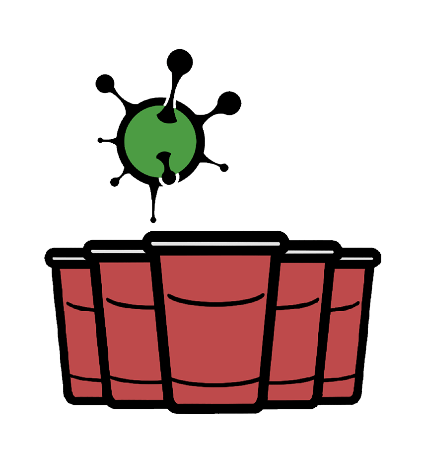 My design sends a message directly to students. Beer pong is the first thing I think of when it comes to college nightlife. I created an original design of beer pong cups, and a virus ball to represent the beer pong ball. I drew inspiration from Simon Oxley (designed Twitter's icon) and his simplistic forms. I then put this design on a mask as that is the new normal in the days of a pandemic. Everyone has a mask and it is right on the wearers face so the design will always be noticed.