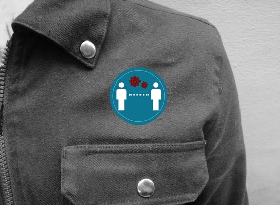 This button design helps to promote students to social distance which is recommended by the CDC. When the campus hosts an event, this graphic helps support Coronavirus safety. I designed my graphic for use on buttons that students can wear on their shirt or jacket. I signaled social distancing with two people in my graphic. The six dots represent 6 feet of distance between one another whenever possible. I made a shape of the Coronavirus on the top center between the two people. The Coronavirus is dangerous, and we need to help limit the spread among people.