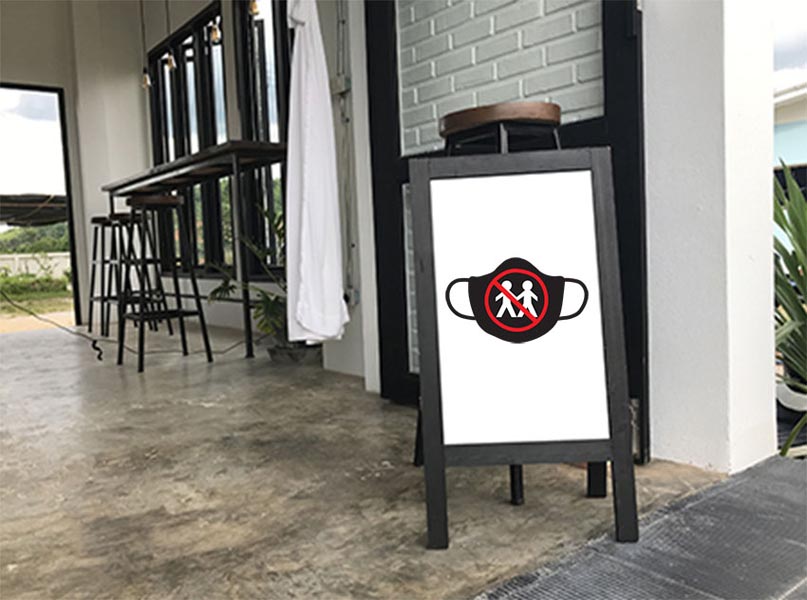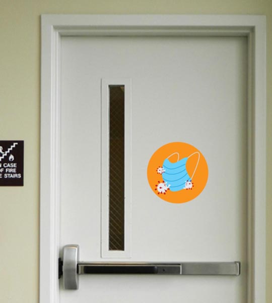 My design promotes wearing a mask to protect against the coronavirus. In context, the design would be displayed as a large sticker on entry and exit points in buildings placed eye level on the door.
