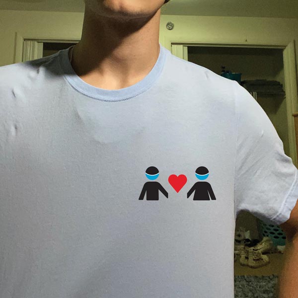 This design is very adaptable in its use. I created it with the intention for use on buttons, stickers, or apparel, but it also adapts well to simply being an image flashed on a phone screen. I chose to keep it relatively simple as it’s an easy message to understand. I also chose this style because it’s in a similar vein to something my friends would actually own yet could also appeal to people outside of this demographic. The choice to place the icons on either side of the text was done so the message was displayed twice in the piece.