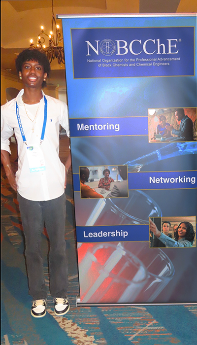“Bradley is very ambitious and industrious,” said NOBCChE faculty advisor Julius Green, a SUNY Cortland assistant professor of organic chemistry. Blake was Green’s research assistant in summer 2024 and through the 2024-25 academic year.